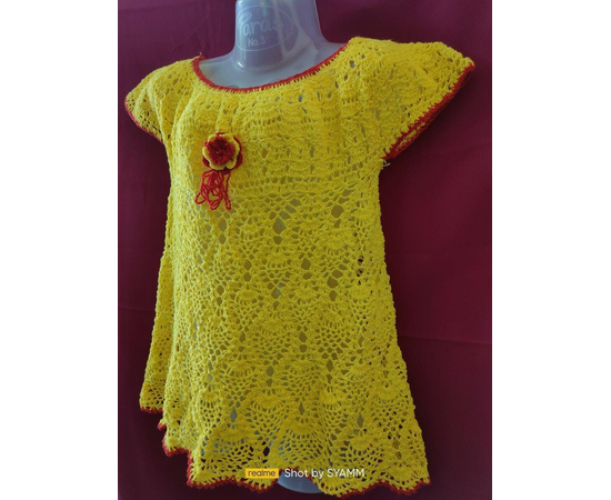 Adorable baby girl dress, crocheted from pure cotton yarn in yellow color, decorated with crocheted flower in the front. This dress is a perfect combination of style and comfort, allowing them to feel comfortable and not restricted.