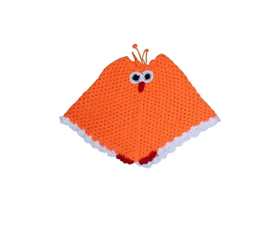 Features beautiful Orange color crochet all over along with cute white colored crochet eyes and red colored crochet tongue to make it look funky and cool for your baby girls. Suitable for winters, extremely trendy and stylish for casual outings and winter parties. The high quality yarn is used to make this poncho tops for girls, stylish as well as soft, silky and comfortable for skin.