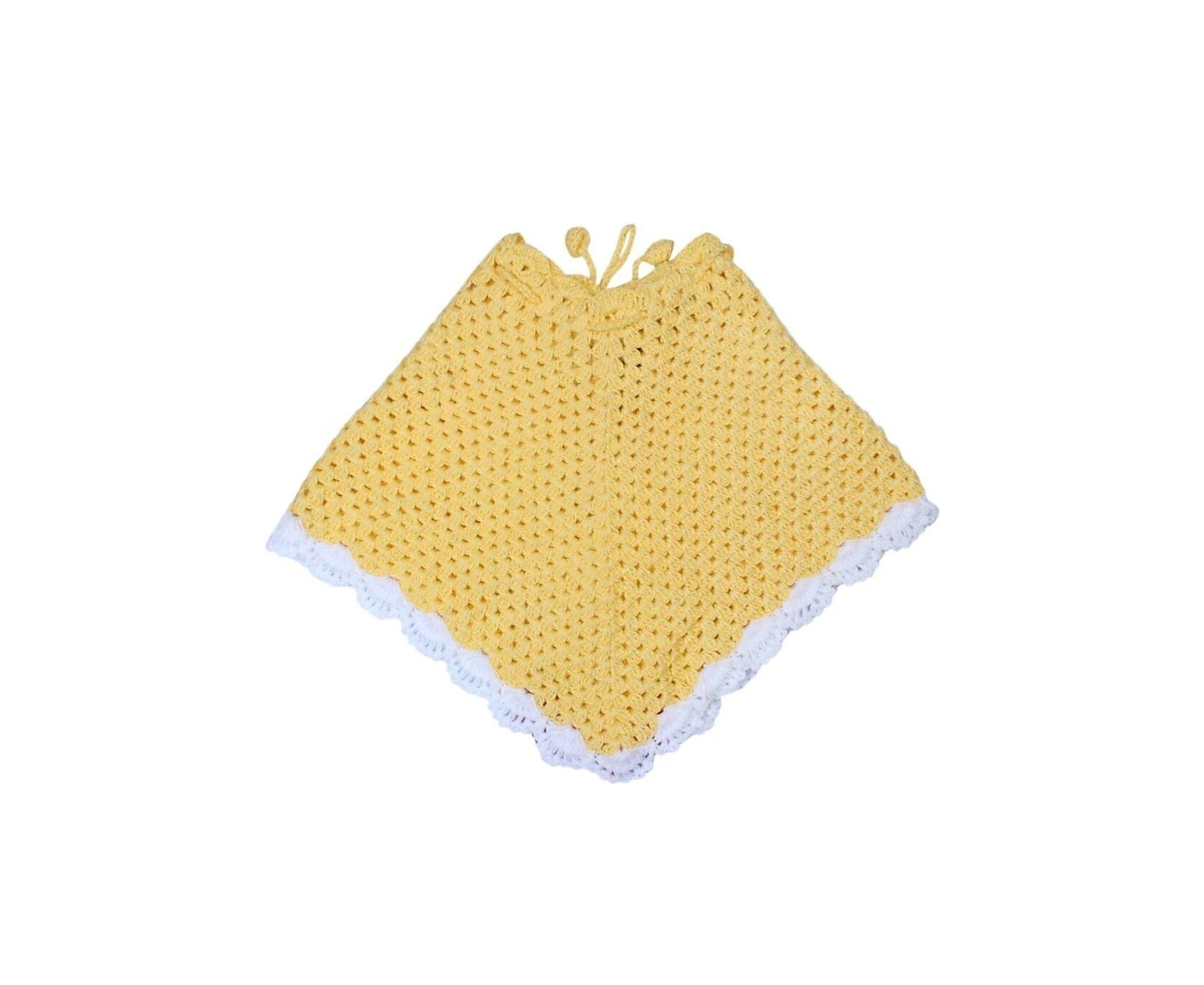 Yellow cotton handmade crochet poncho for kids aged 12 months, cute outfit for summer or spring, best gift idea for kids, washable