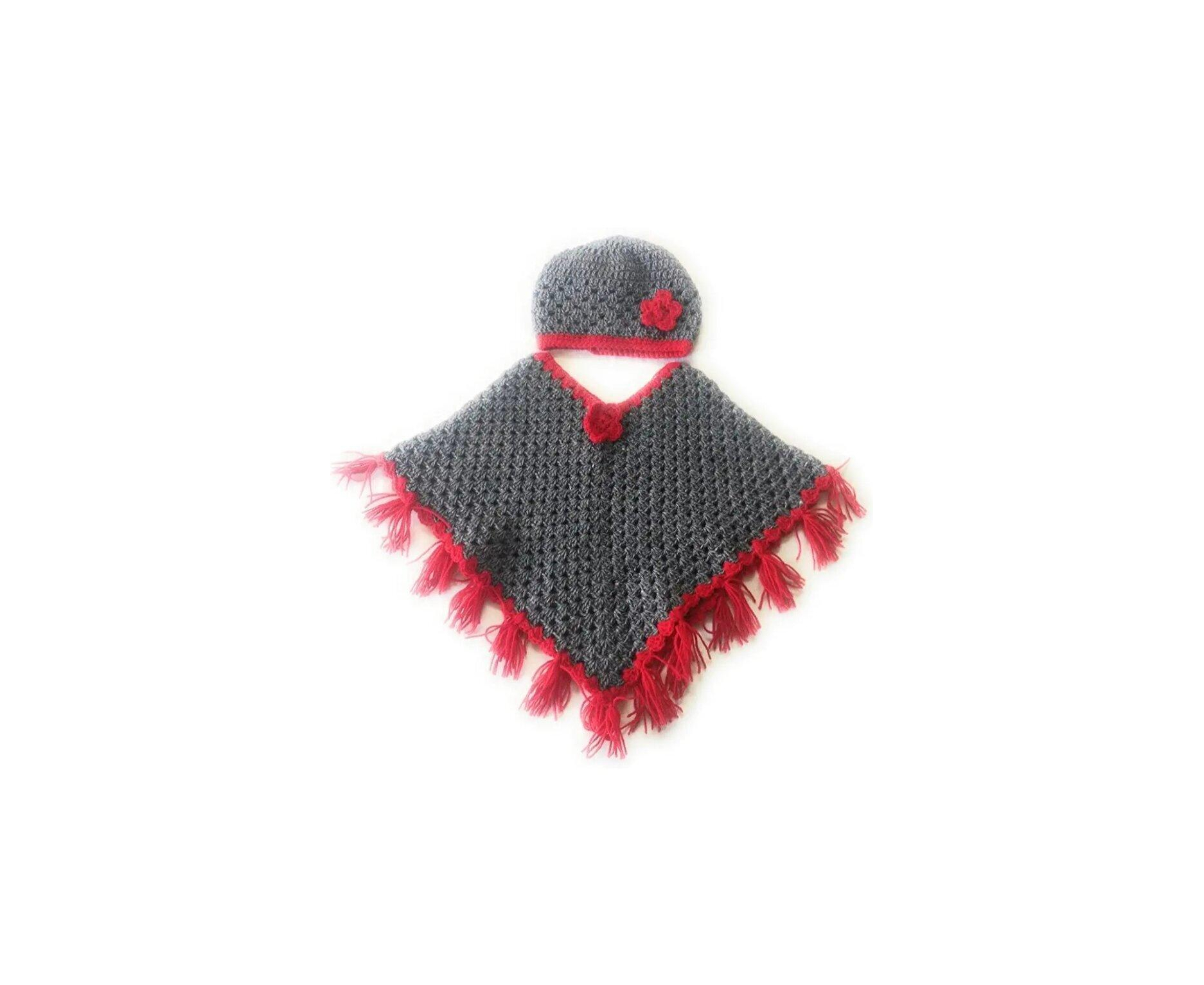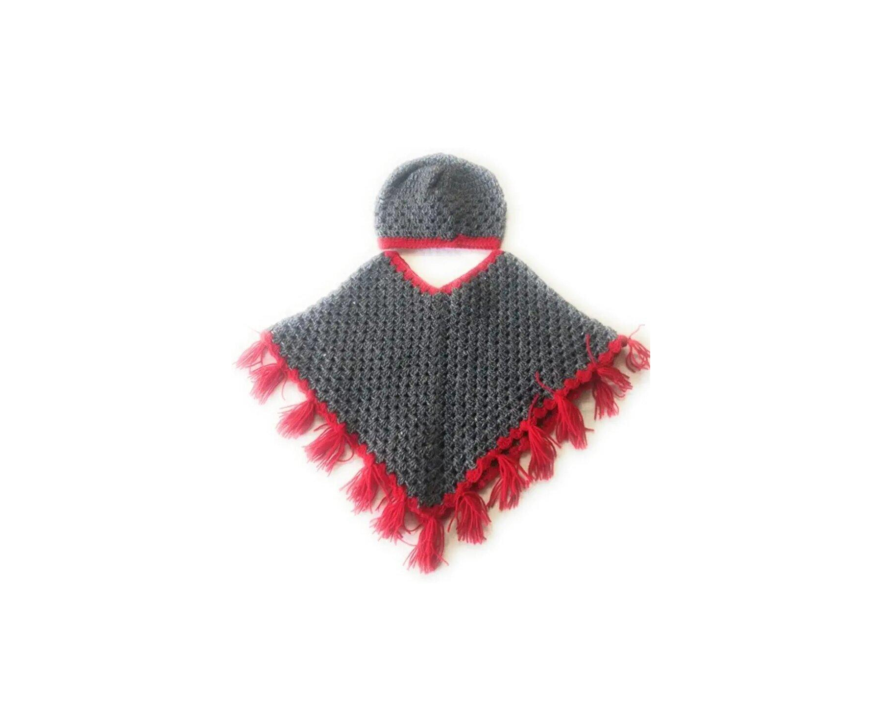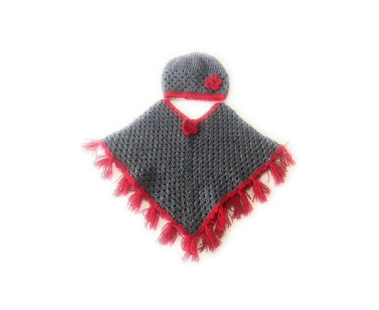 Features beautiful grey and red color crochet poncho and a cap with funky and cool patterns for your girl. Suitable for winters, extremely trendy and stylish for casual outings and winter parties. The high quality yarn is used to make this poncho tops for girls, stylish as well as soft, silky and comfortable for skin.