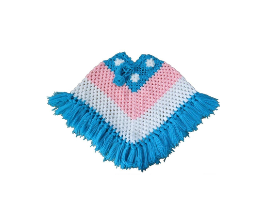 This Winter Season, an Exclusive, Elegant and Collection of Beautiful Hand Knitted 100% Cotton Crochet Poncho/Cape For Your Little Princess. The Poncho is Extremely Stylish, Soft and Comfortable. It comes in an attractive color and design, and is a perfect fit for casual outings and winter parties. Knot closure at the top ensures perfect fitting.