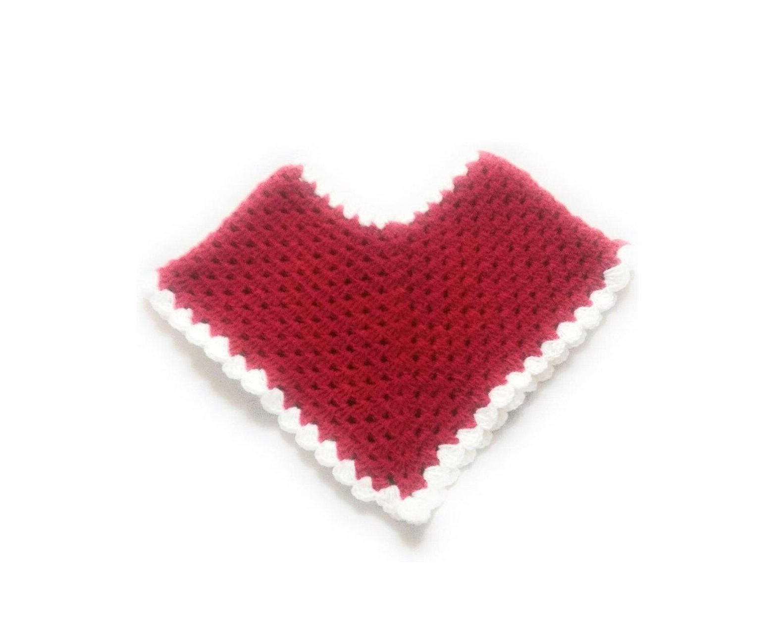 Hand Knitted Poncho / Cape for Kids / Handmade Crocheted Poncho ~ Red ~ Acrylic / Crochet Poncho