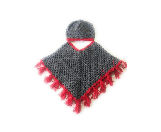 Features beautiful grey and red color crochet poncho and a cap with funky and cool patterns for your girl. Suitable for winters, extremely trendy and stylish for casual outings and winter parties. The high quality yarn is used to make this poncho tops for girls, stylish as well as soft, silky and comfortable for skin.