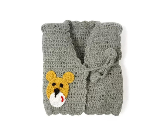 This is an exquisite piece made by crochet with 100% cotton yarn count 2/10, for your little baby. It can be worn at parties and special events. It gives a new look and personality to your baby girl or boy. It is made by pure, soft and the best quality material. Suitable for winter/semi winter.