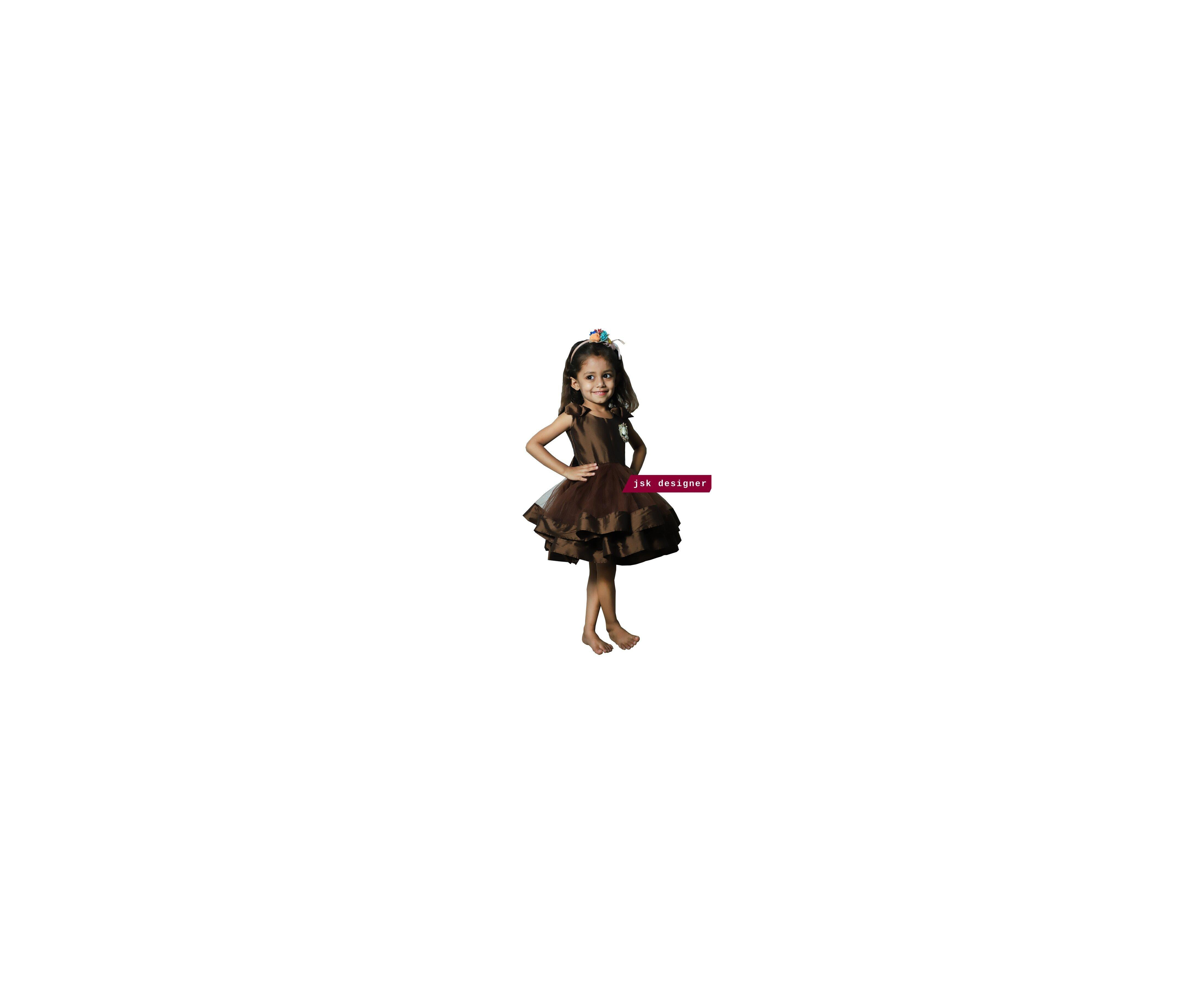 Gorgeous girls gown mainly used for a special occasion like birthday party, marriage, and so on. This is in brown color shade. Soft Net, Silk, and cotton make this dress comfortable as well as trendy.