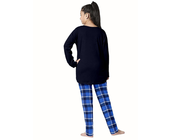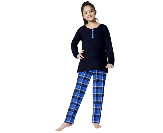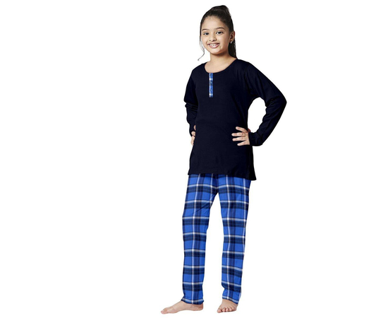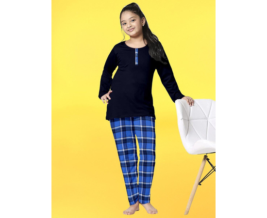 Girls Blue Checked Night Suit | 100% Cotton T-shirt and Bottom Comfort wear for girls