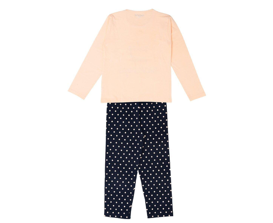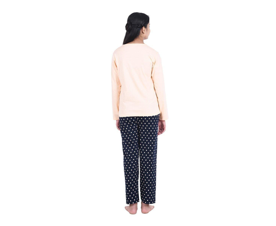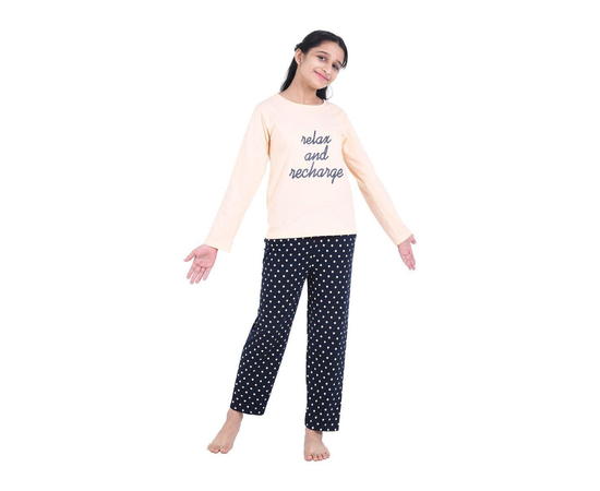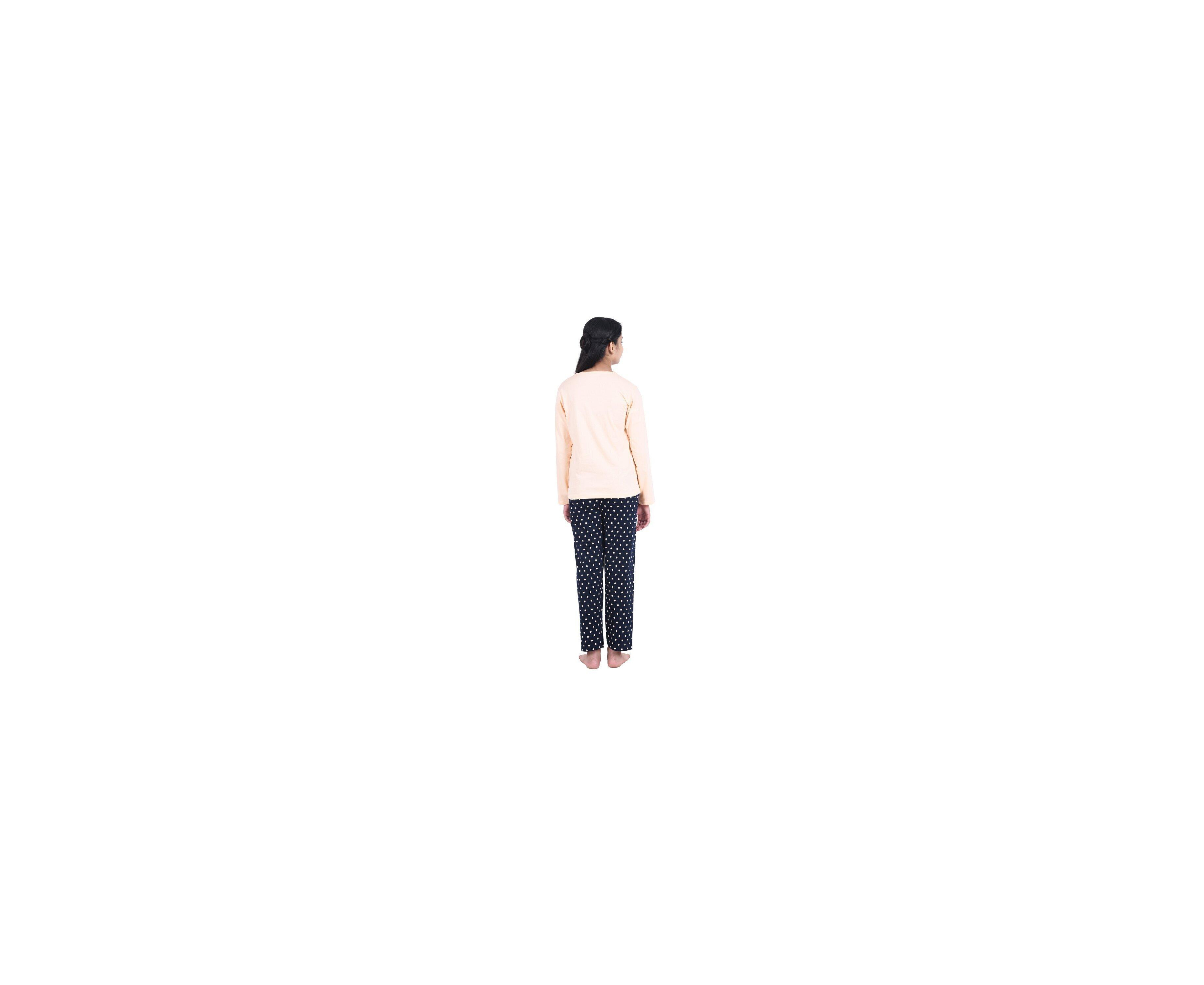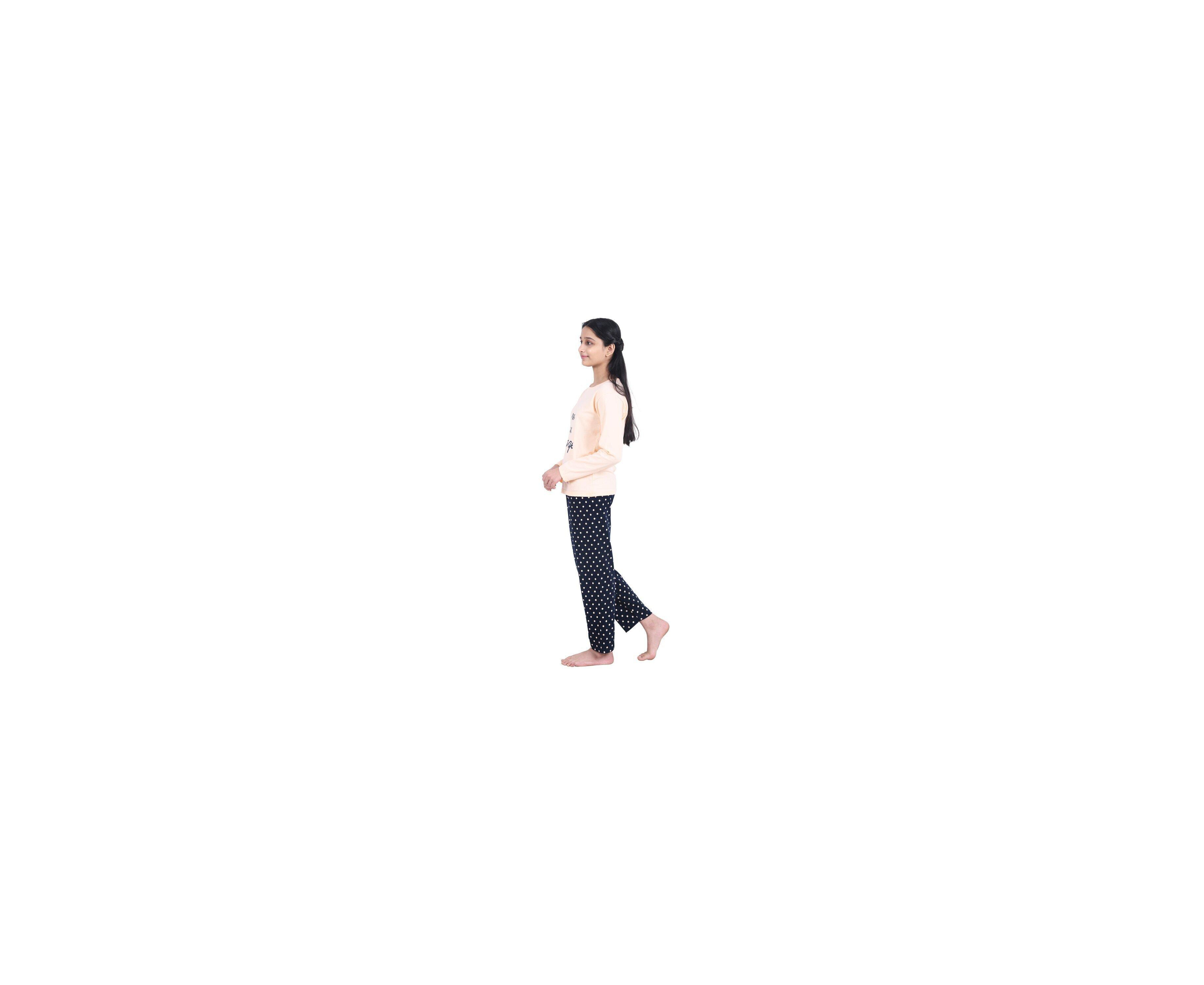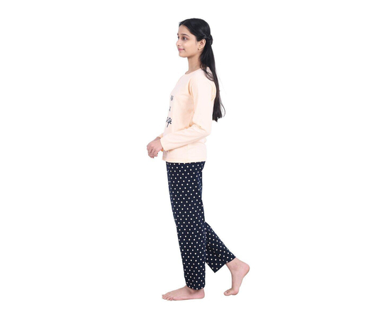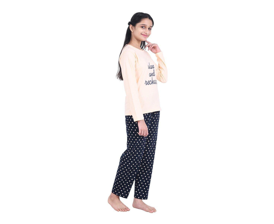 Girls Peach & Navy Blue Typography Printed Night suit | Kids Night Dress for Girls Cotton T-shirt Pajama Set Kids Girls | Exclusive range