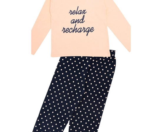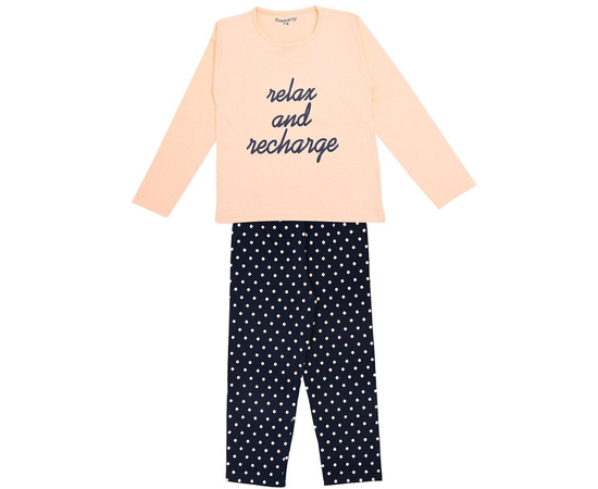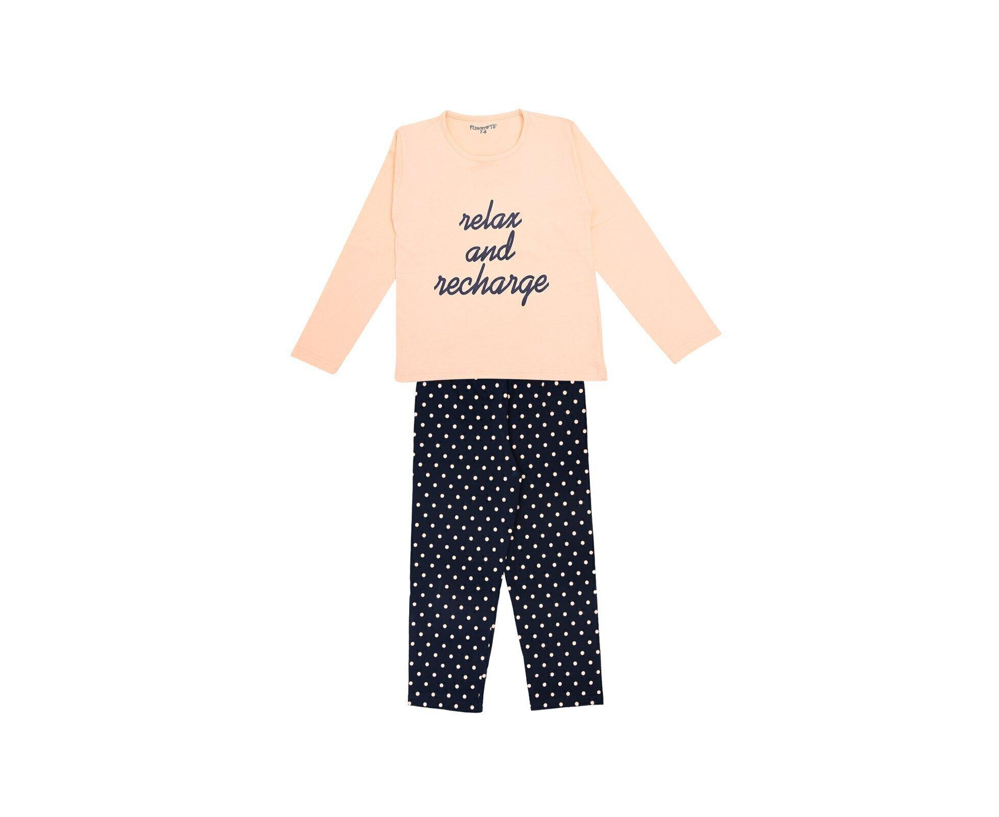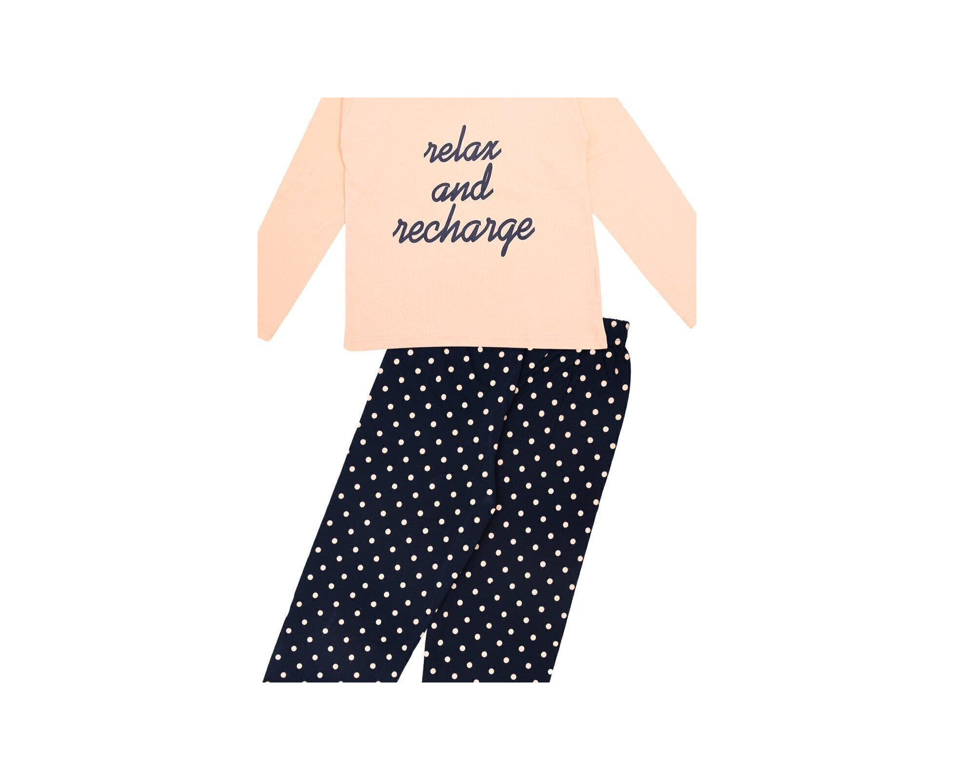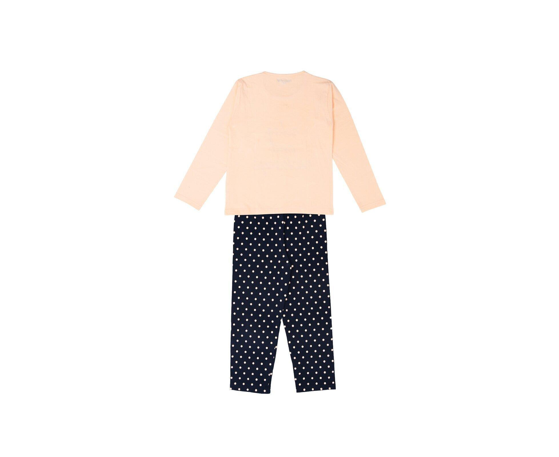 Girls Peach & Navy Blue Typography Printed Night suit | Kids Night Dress for Girls Cotton T-shirt Pajama Set Kids Girls | Exclusive range