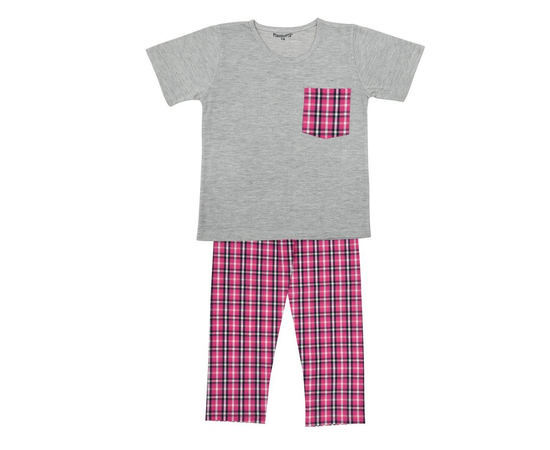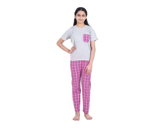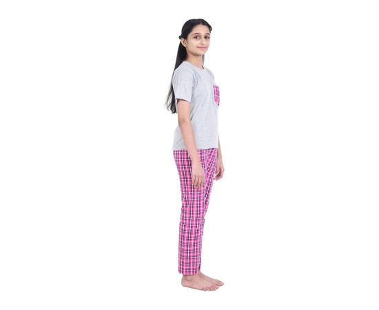 Girls Pink & Grey Checked Night Suit | 100% Cotton T-shirt and Bottom Comfort wear for girls