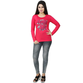 Girls/Women Full Sleeve Cotton Pink Printed Top