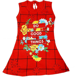 Girls Cotton Sleeveless Round Neck Red Floral Printed A-Line Frock