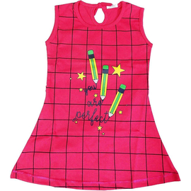 Girls Cotton Sleeveless Round Neck Pink Pencil Printed A-Line Frock