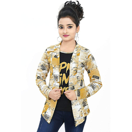 Girl's Full Sleeve Cotton ITS My Style Printed T-Shirt with Printed Jacket Shrug
