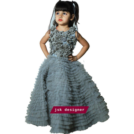 Grey Ruffle Gown Price Baby Dress Baby Girl Pageant Dress Girl Vesture, Flower Girl Dress, Princess baby gown, birthday party frock