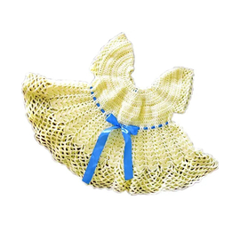 CROCHET BABY FROCK/YELLOW CROCHET FROCK WITH BLUE RIBBON/DESIGNER FROCK FOR BABIES/PARTY WEAR FROCK FOR SMALL GIRLS