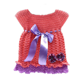 CROCHET BABY FROCK/PEACH CROCHET FROCK WITH PURPLE RIBBON/DESIGNER FROCK FOR BABIES/PARTY WEAR FROCK FOR SMALL GIRLS