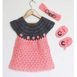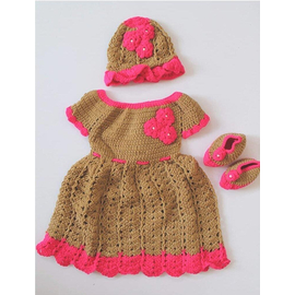CROCHET BABY FROCK/CROCHET FROCK CAP BOOTIES/CROCHET FROCK SET/PARTY WEAR FROCK FOR BABIES/BROWN & PINK FROCK SET