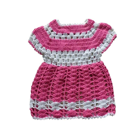 HANDMADE CROCHET BABY FROCK/PINK CROCHETED FROCK/PARTY WEAR FROCK FOR BABIES/HAND KNITTED BABY DRESS/PINK & WHITE FROCK