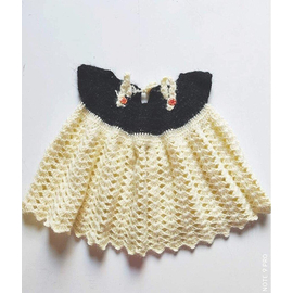 HANDMADE CROCHET BABY FROCK/CREAM & BLACK COLOR CROCHETED FROCK/PARTY WEAR FROCK FOR BABIES