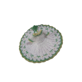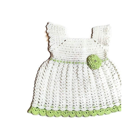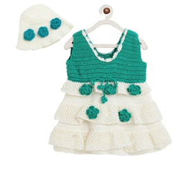 White Green Flower Decorated Crochet Lacy Dress Set । Baby Girls Frock With Cap | Hand Crocheted ruffle frock in white and green color