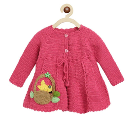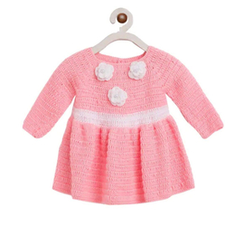 HANDMADE CROCHET BABY FROCK/PINK CROCHETED FULL SLEEVES FROCK/DESIGNER FROCK FOR BABIES/PARTY WEAR FOR BABY GIRL
