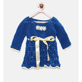 CROCHET BABY FROCK/BLUE CROCHETED FROCK WITH RIBBON/DESIGNER FROCK FOR BABIES