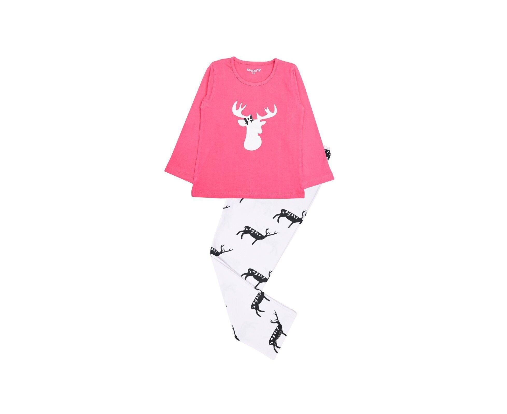 Pink & White Full Sleeves Reindeer Printed Nightwear Suit for Girls | Nightdress Summer Full Sleeve suit Combo Set | Exclusive range