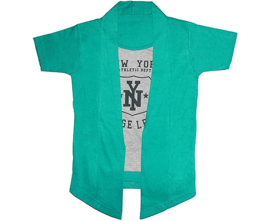 Half Sleeve Cotton White Printed T-Shirt with Turquoise Jacket Shrug Look Smart and Comfortable for Any Casual and Festive Purpose