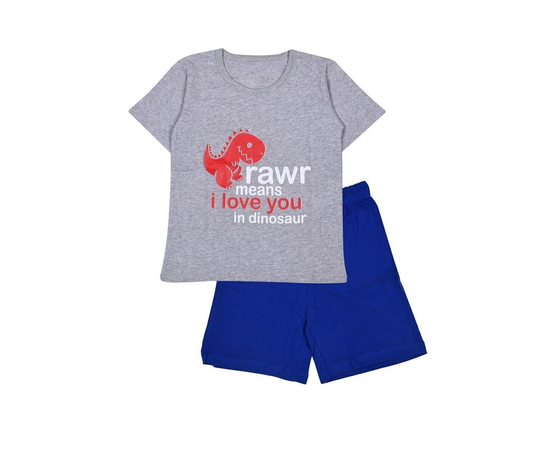 Boys Blue & Grey Printed Night Suit Shorts Set | Kids Half Sleeves Casual All Day Wear Dress T-Shirt & Shorts