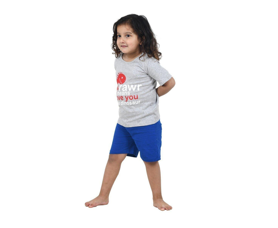 Boys Blue & Grey Printed Night Suit Shorts Set | Kids Half Sleeves Casual All Day Wear Dress T-Shirt & Shorts