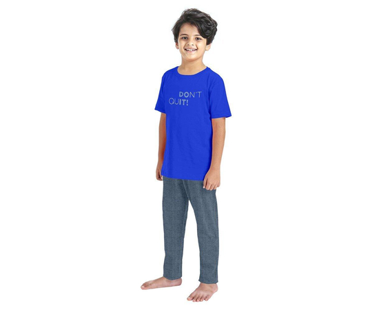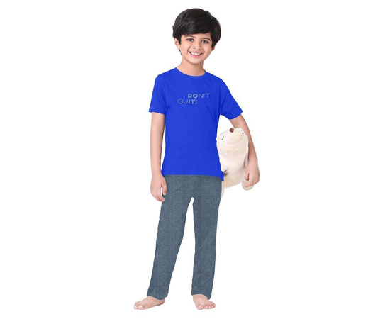 Boys Blue & Grey Typography Printed Night suit | Kids Night Dress Comfortable for Boys Cotton T-shirt Pajama | Buy now
