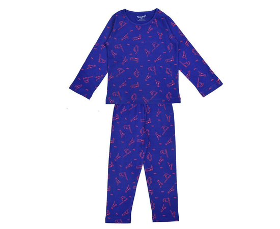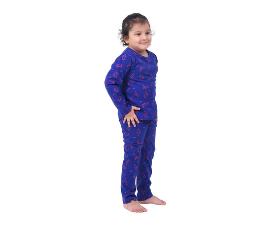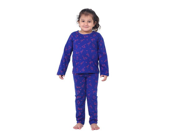 Boys Blue Dinosaur Printed Pure Cotton Night suit | Kids Night Dress for Boys Cotton T-shirt Pajama Set