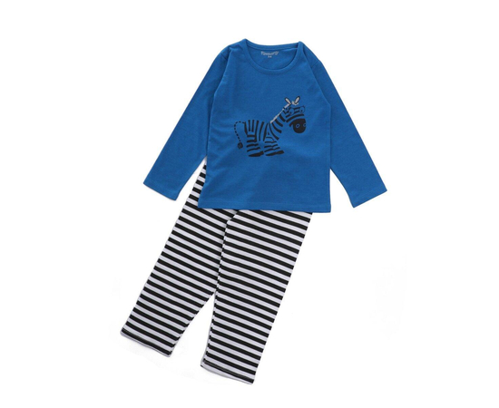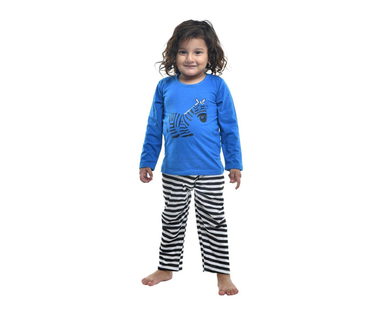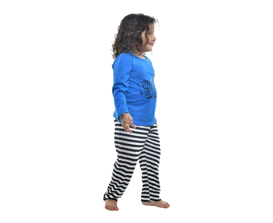 Make bedtime fun with this blue zebra-printed cotton night suit. Ideal for all-day wear or bedtime, this soft and comfy night dress is sure to keep your child happy and stylish