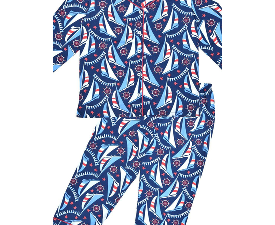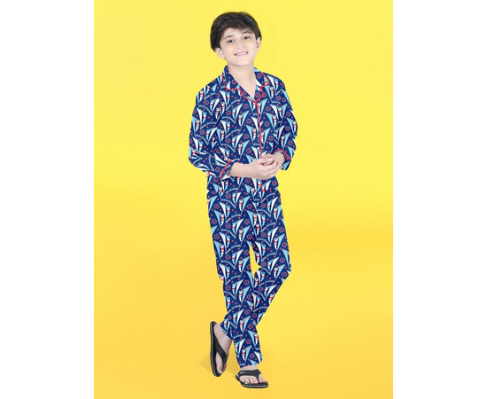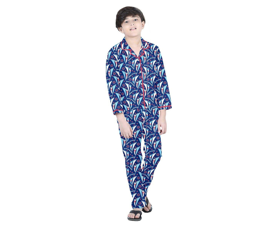 Sailing the high seas or just dreaming of it, this blue nautical printed cotton night suit for boys will have your child living out their seafaring fantasies in utter comfort.