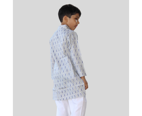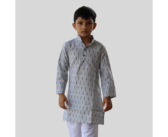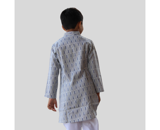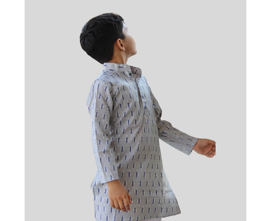 Grey Ikat print cotton Kurta pajama set | Boy's Cotton Kurta Pyjama Set