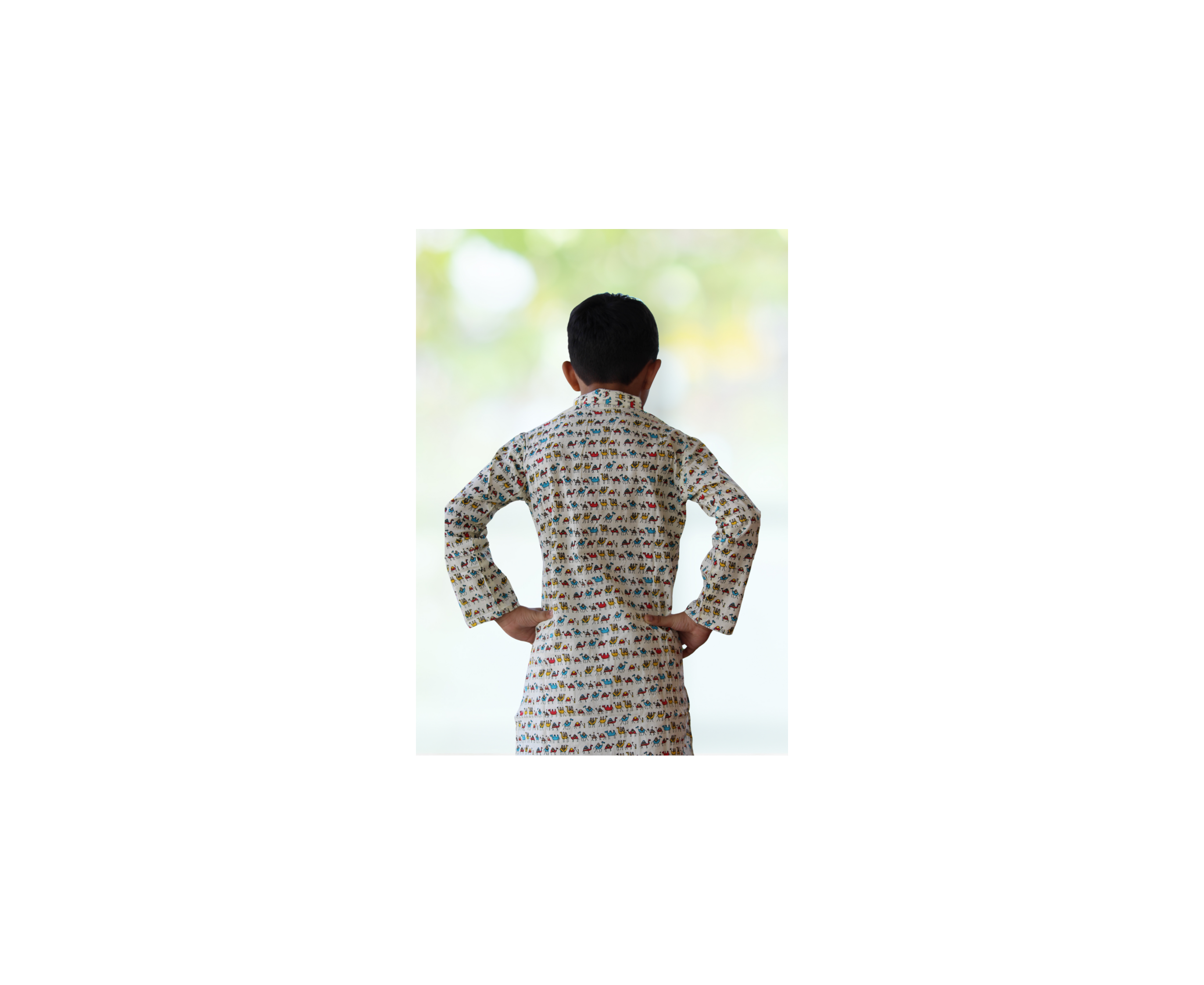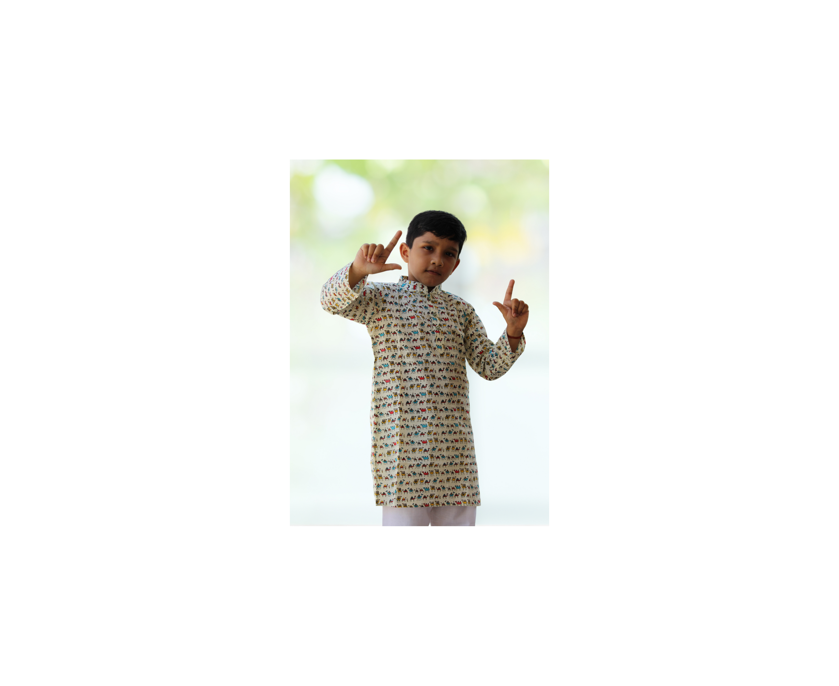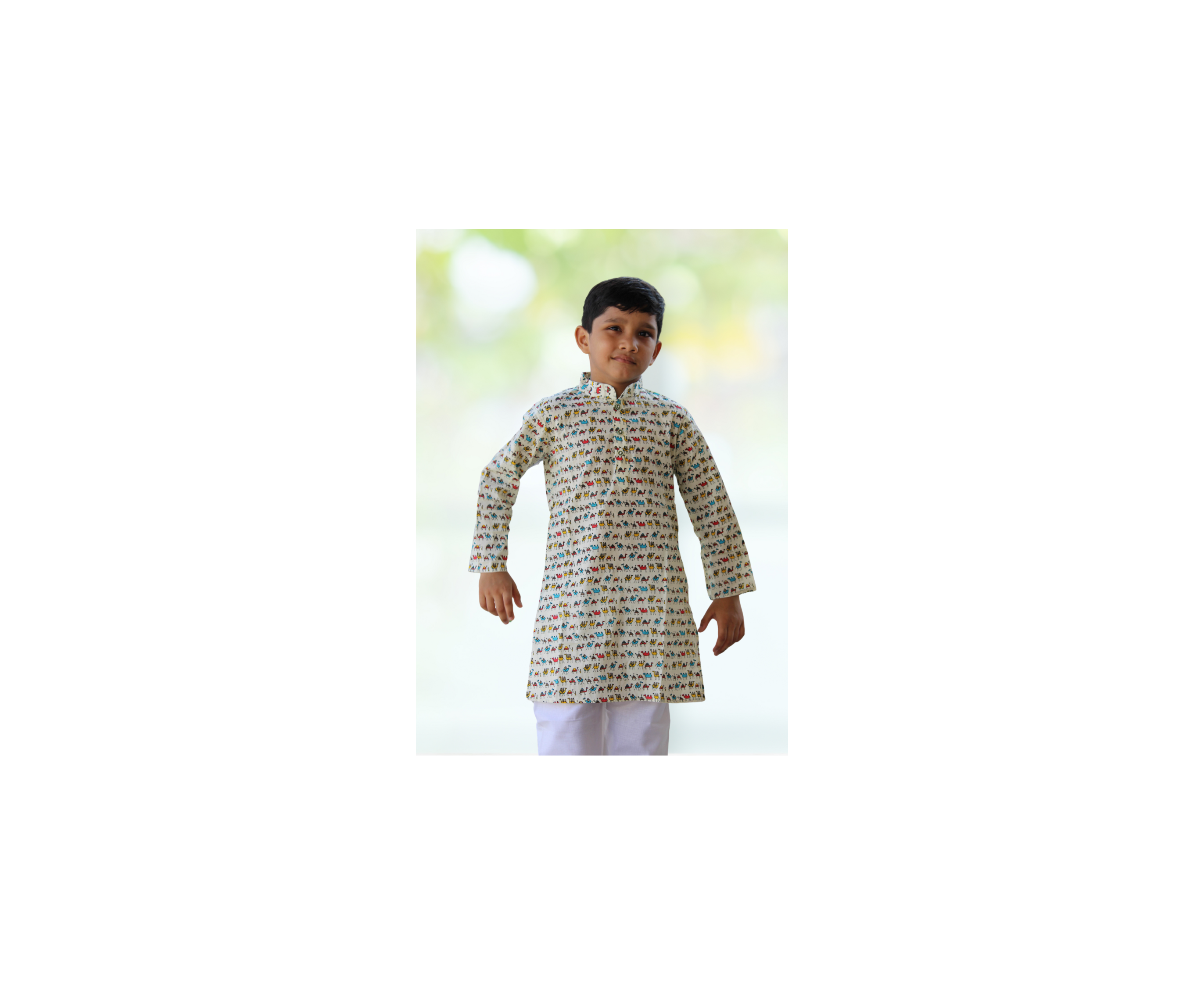 Handblock Print Cotton kurta pajama set | Boy's Cotton Animal printed Kurta Pyjama Set for kids