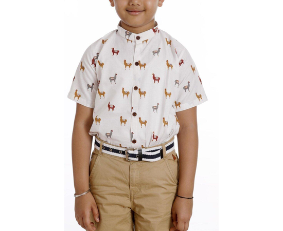 Horse printed White Cotton Shirt for Boys age up to 7 to 10 years/Stylish Kids Cotton Shirt/Mandarin Collar/Short Sleeves/Summer wear for boys