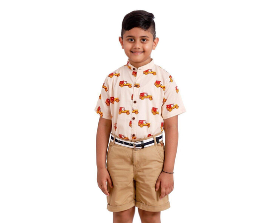 Regular fit Half Sleeves Mandarin Collar Graphic Pattern Casual Shirts for Boys.
