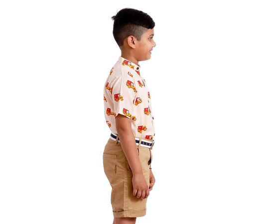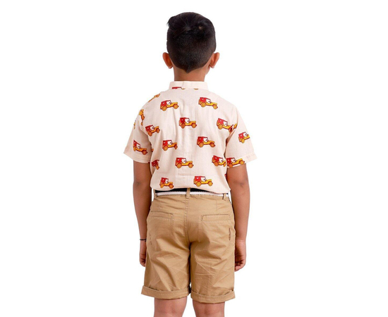 Handmade Jeep Print Regular Fit Casual Cotton White Color Shirt/7 to 10 Years/Party Wear for Boys/Summer Wear For Kids