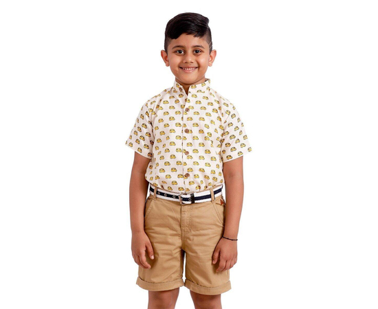 • Regular fit Half Sleeves Mandarin Collar Graphic Pattern Casual Shirts for Boys