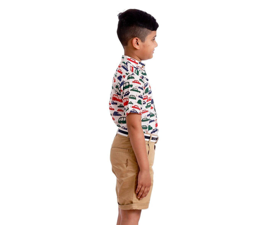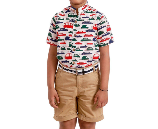 A simple, but incredibly attractive White cotton Regular Fit shirt featuring multi colored Cars and Graphic Pattern Casual Shirts for Boys. This is a great shirt that's just as at home worn casually with some shorts, as it is with a pair of navy slacks in a more formal setting.