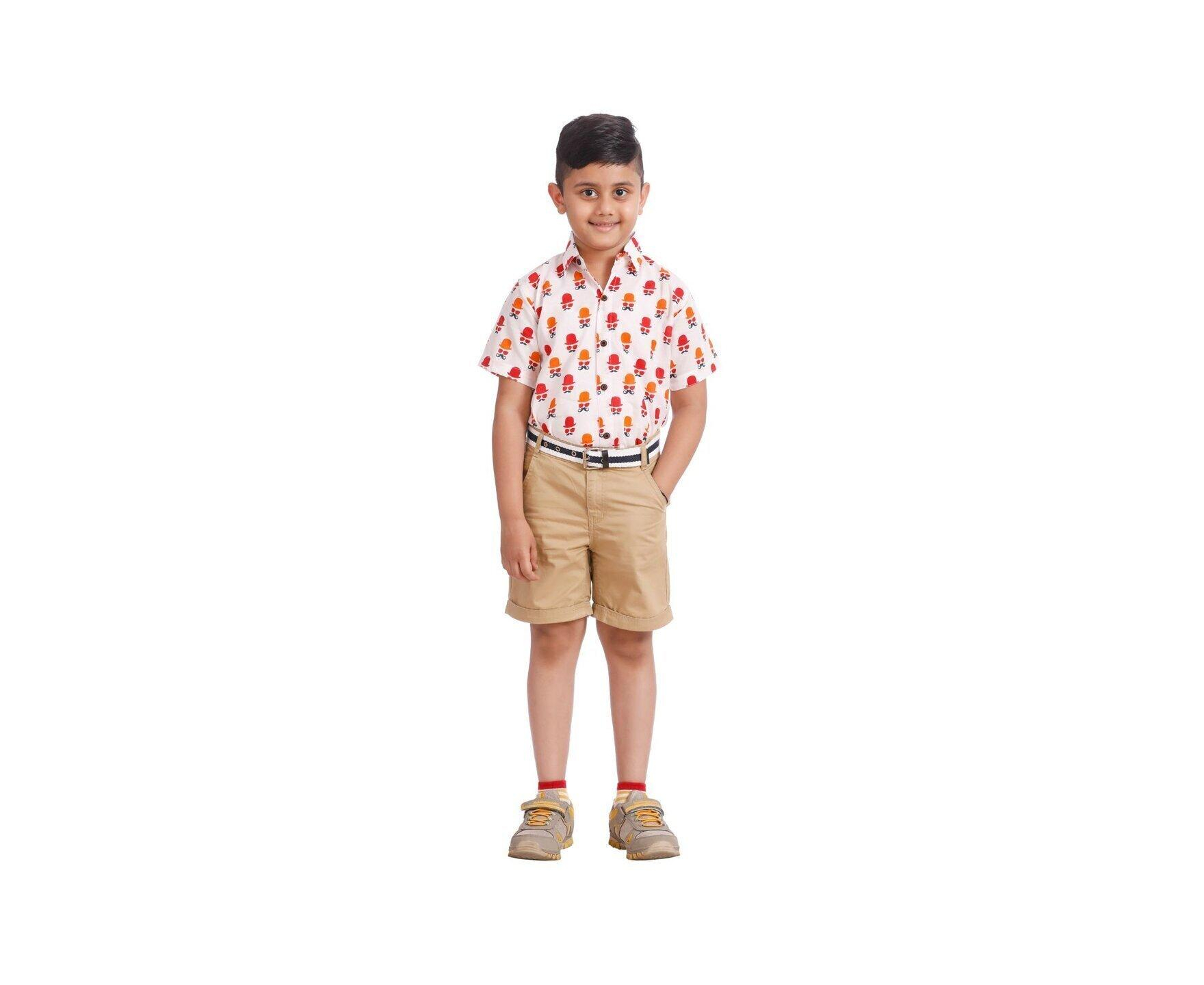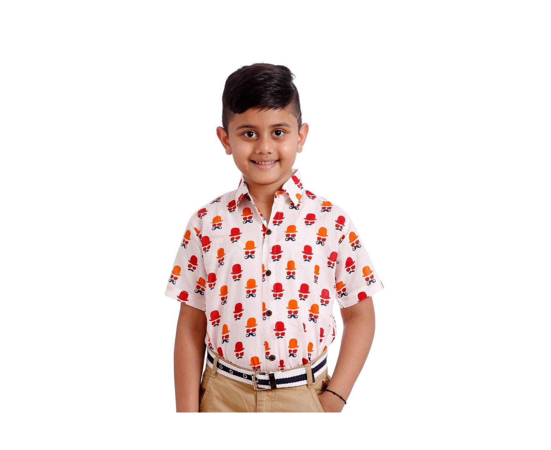 Boys button up shirt, Spread collared, 100 % Cotton Summer Shorts Sleeve Shirts for 7 to 10 years old Boys, White Printed Regular Wear Shirt