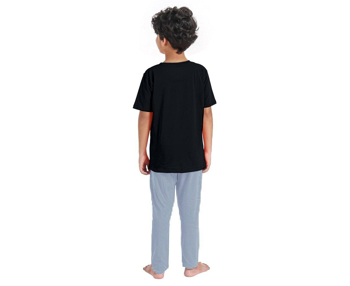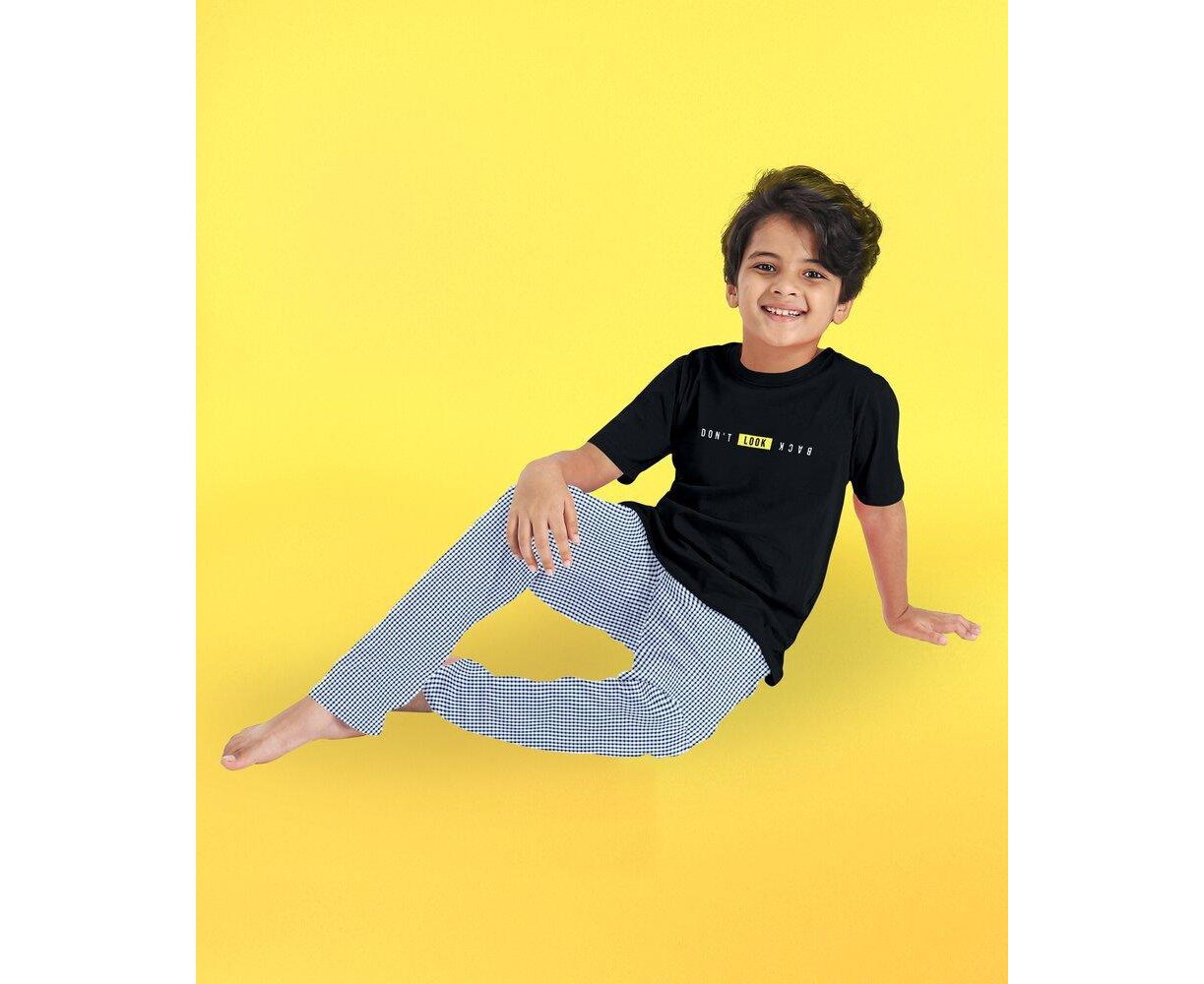 Unisex Kids Black Typography Printed Checked Night suit | Kids Night Dress Comfortable for Boys | Shop now