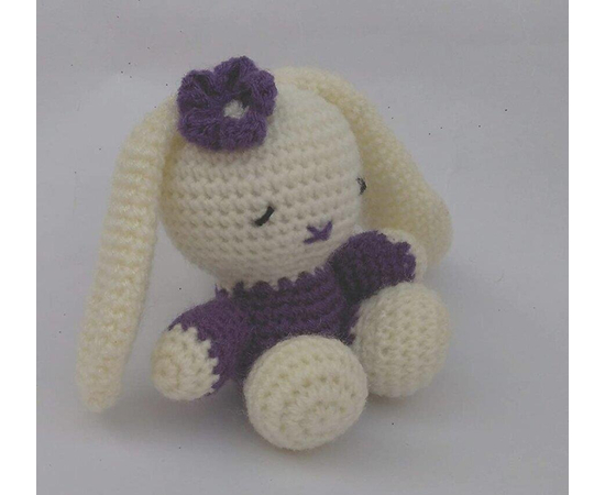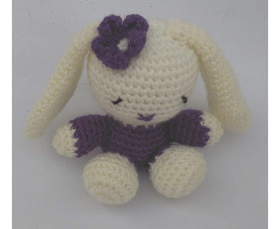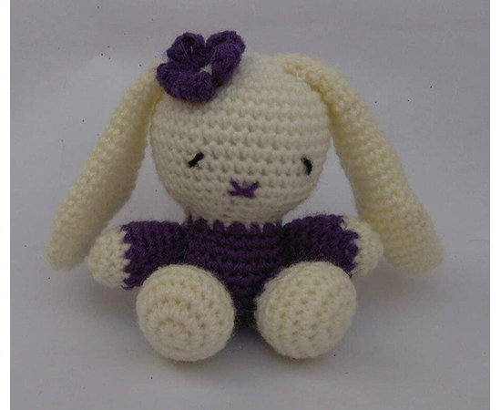 This cutie cuddly bunny is hand-made with love and care by the rural women artisan of Narsapur Lace cluster. These bunnies are very popular because they are made of hypoallergenic yarn. It is cute, calm, and can play with your baby or toddler all day or night long. safety eyes are used and strengthened, so it is suitable for a newborn without problems.