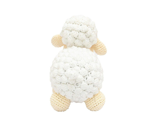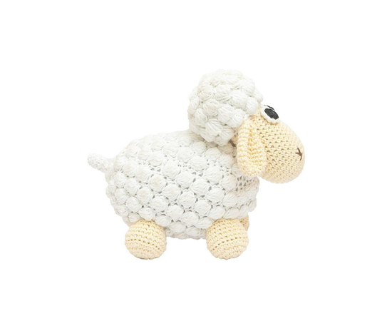 This cutie little lamb is hand-made with love and care by the rural women artisan of Narsapur Lace cluster. These sheeps/lambs are very popular because they are made of hypoallergenic yarn. It is cute, calm, and can play with your baby or toddler all day or night long. safety eyes are used and strengthened, so it is suitable for a newborn without problems.