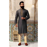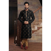 Add a touch of sophistication to your ethnic wardrobe with our Brown and Black Jute Cotton Party Wear Kurta Pajama with Jacket for Men. Made from high-quality silk fabric in a stylish Black color, this ensemble is designed to impress. The jute cotton printed jacket in a delightful brown color shade adds a unique and trendy element to the outfit. Available in multiple sizes, this kurta pajama set is crafted with attention to detail and offers the best quality and finishing.