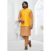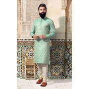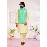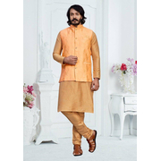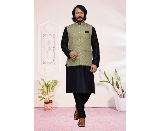 Upgrade your ethnic fashion game with our Brown color and Black Jute Cotton Party Wear Kurta Pajama with Jacket for Men. This exquisite ensemble features a kurta and pajama made from premium silk fabric in an elegant cream color. The highlight of this outfit is the jute cotton printed jacket in a refreshing light green shade, which adds a contemporary and stylish touch. Perfect for parties, weddings, and festive occasions, this kurta pajama set is designed to make you stand out in the crowd. The comfortable fit and superior craftsmanship ensure that you feel confident and at ease throughout the event. Available in sizes M, L, XL, and XXL, this outfit caters to a wide range of body types and preferences. The combination of Brown and Black colors exudes sophistication and elegance, making it a versatile choice for various occasions. We take pride in offering the best quality and finishing in our products. Each piece is meticulously crafted with attention to detail, ensuring a garment that not only looks exceptional but also feels comfortable to wear.