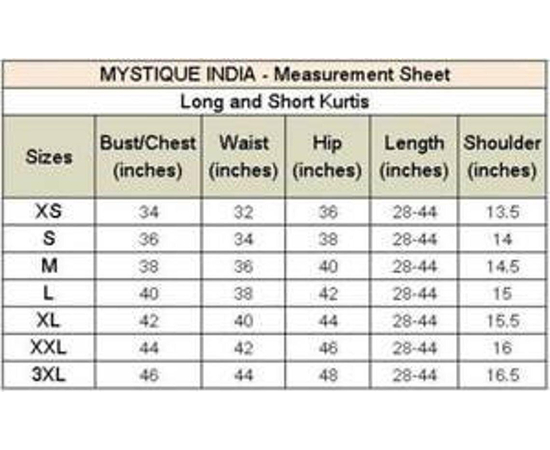 - Kurta- Length- 35“to 40” Inches. (According to size)
