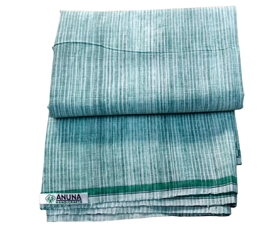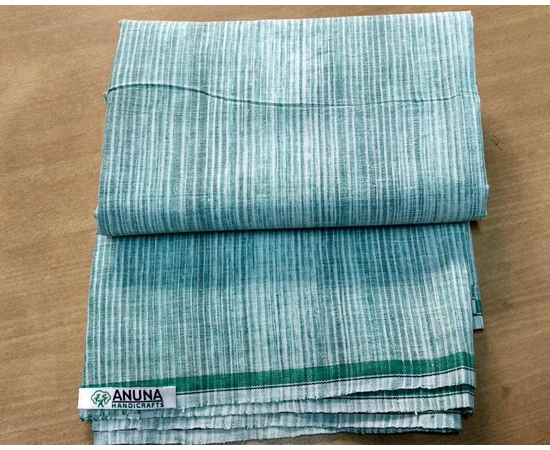 This Indian Lungi is made of high quality cotton and produced by a small weaving mill in our local area in India. It is a light shade of grey with a border as in the photo. There might be some slight differences in exact border details.