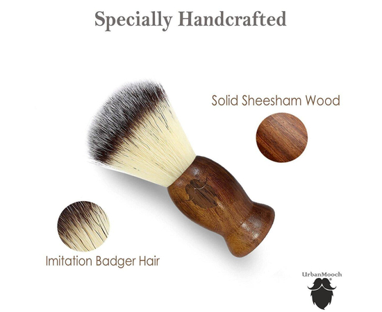 UrbanMooch Shaving Brush For Men | Sheesham Wood Shaving Brush with Ultra Soft & Absorbent Bristles & Long Handle | Imitation Badger Hair Shaving Brush | Cruelty Free | For A Smooth Shave